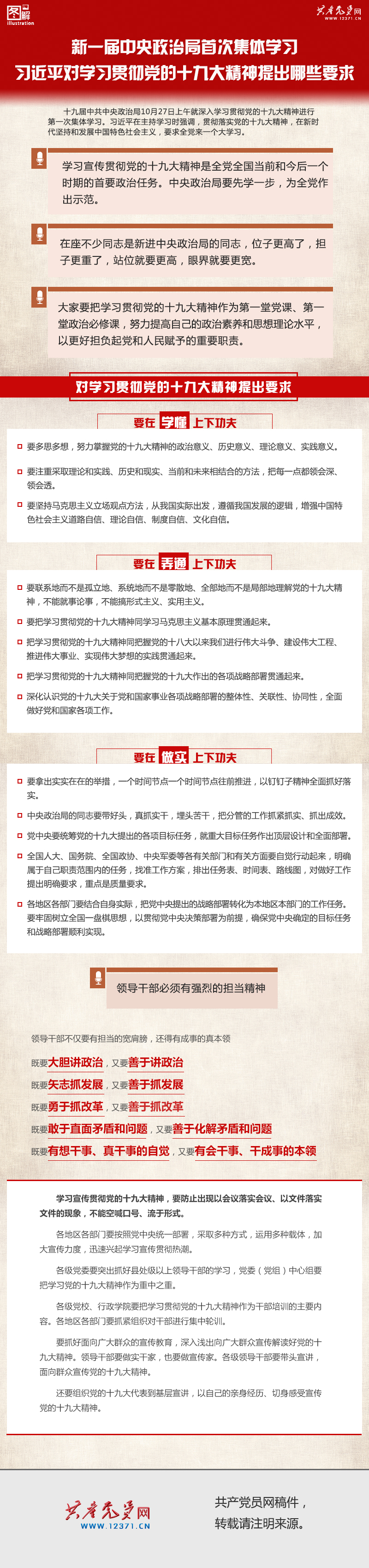 新一届中央政治局首次集体学习 习近平对学习贯彻党的十九大精神提出哪些要求