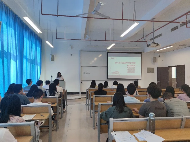 会上,贺雯首先传达了党的十九届五中全会重要精神。中国共产党第十九届中央委员会第五次全体会议,于2020年10月26日至29日在北京举行,全会强调,实现“十四五”规划和二〇三五年远景目标,必须坚持党的全面领导,充分调动一切积极因素,广泛团结一切可以团结的力量,形成推动发展的强大合力。要加强党中央集中统一领导,推进社会主义政治建设,健全规划制定和落实机制。要保持香港、澳门长期繁荣稳定,推进两岸关系和平发展和祖国统一。要高举和平、发展、合作、共赢旗帜,积极营造良好外部环境,推动构建新型国际关系和人类命运共同体。大学生作为国家未来发展的中坚力量,应当扎实专业基础,培养独立思考的能力,坚持创新,更好地将专业知识应用到实际生活中,不断提升学术水平和实践能力。