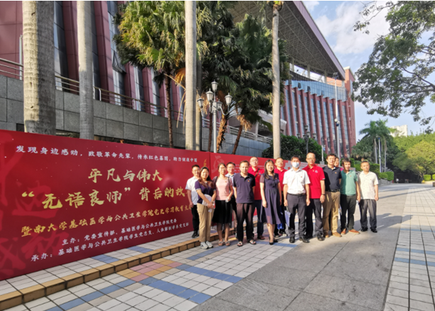 随后,中心组成员集体参观学校“平凡与伟大——‘无语良师’背后的故事”党史学习教育主题展。展览以老党员把遗体捐献给暨南大学医学事业为主线,通过一幅幅展板,图文并茂地讲述了16位“无语良师”背后感人的红色故事,展示了共产党人矢志不渝的革命精神和大公无私的奉献精神。一位位平凡而伟大的人物、一个个鲜活而感人的故事,为中心组成员献上了一堂生动形象、意义深刻的党课。中心组成员纷纷表示要从红色故事中汲取精神力量,传承好暨大红色基因,努力推进党史学习教育与思政铸魂育人有机融合。