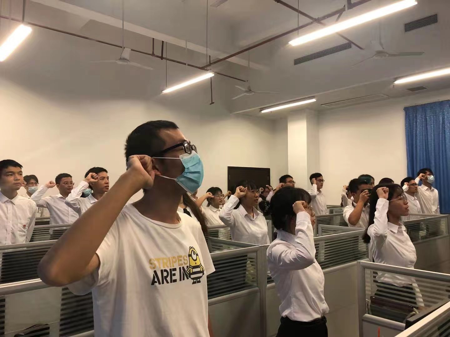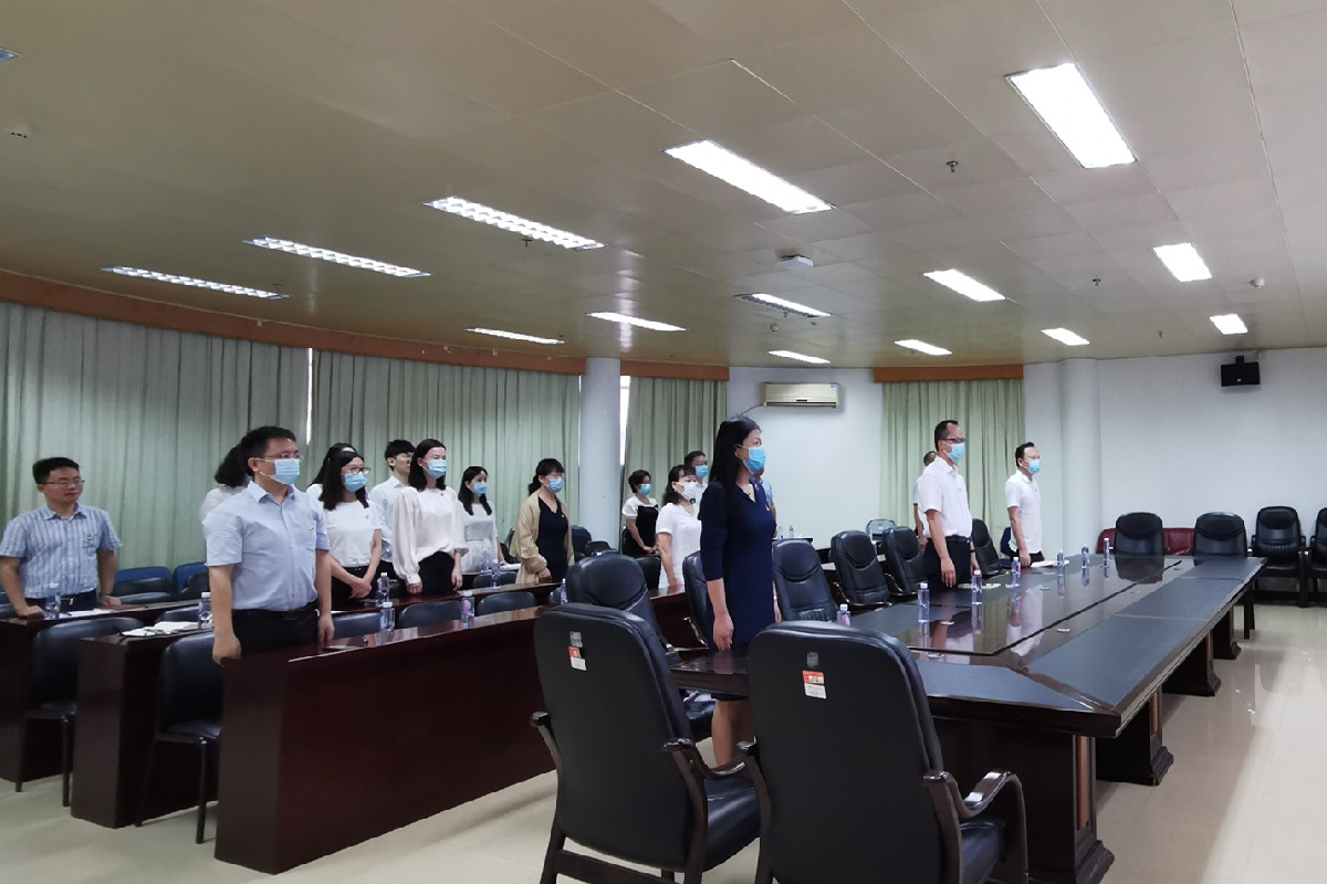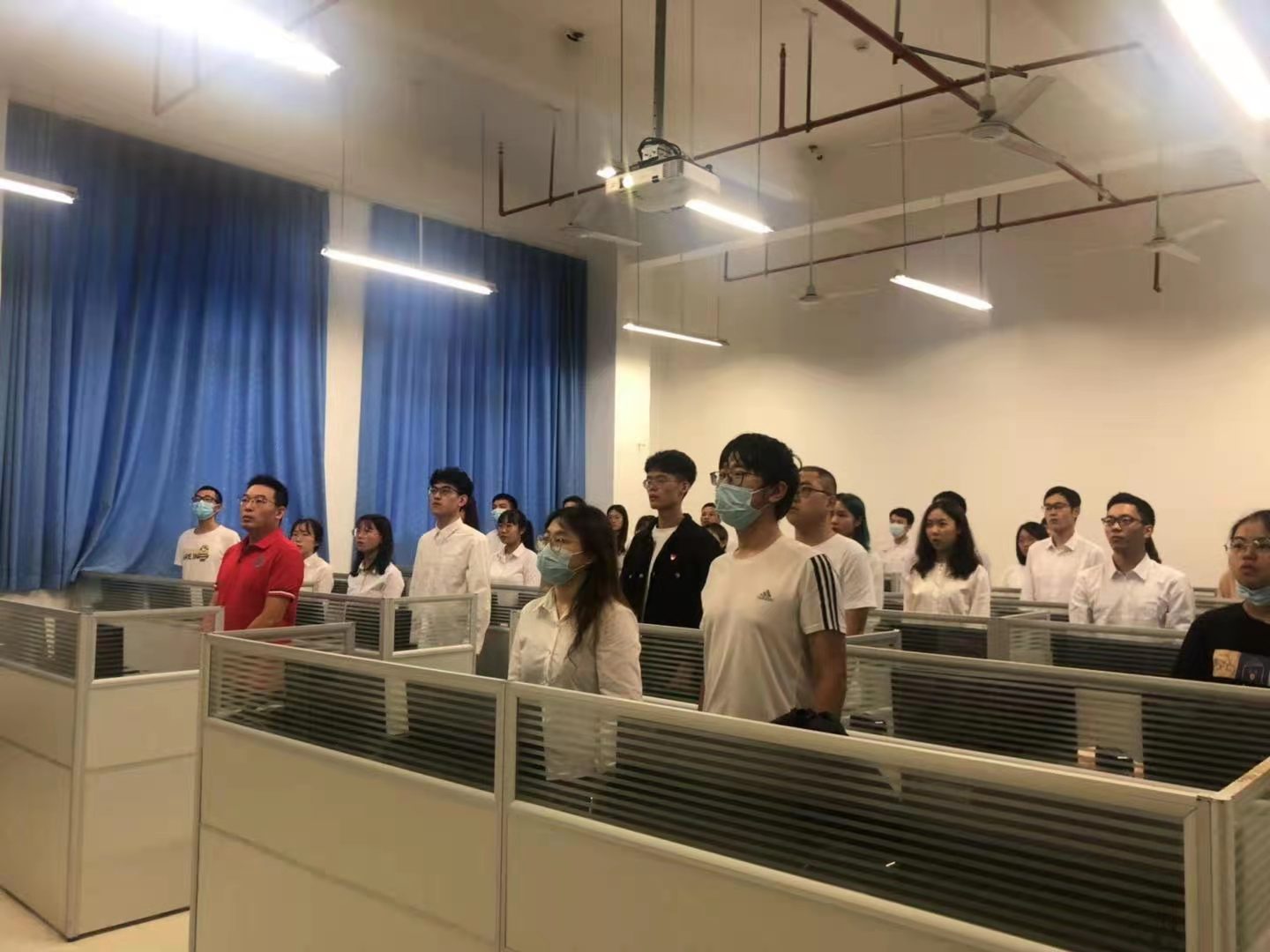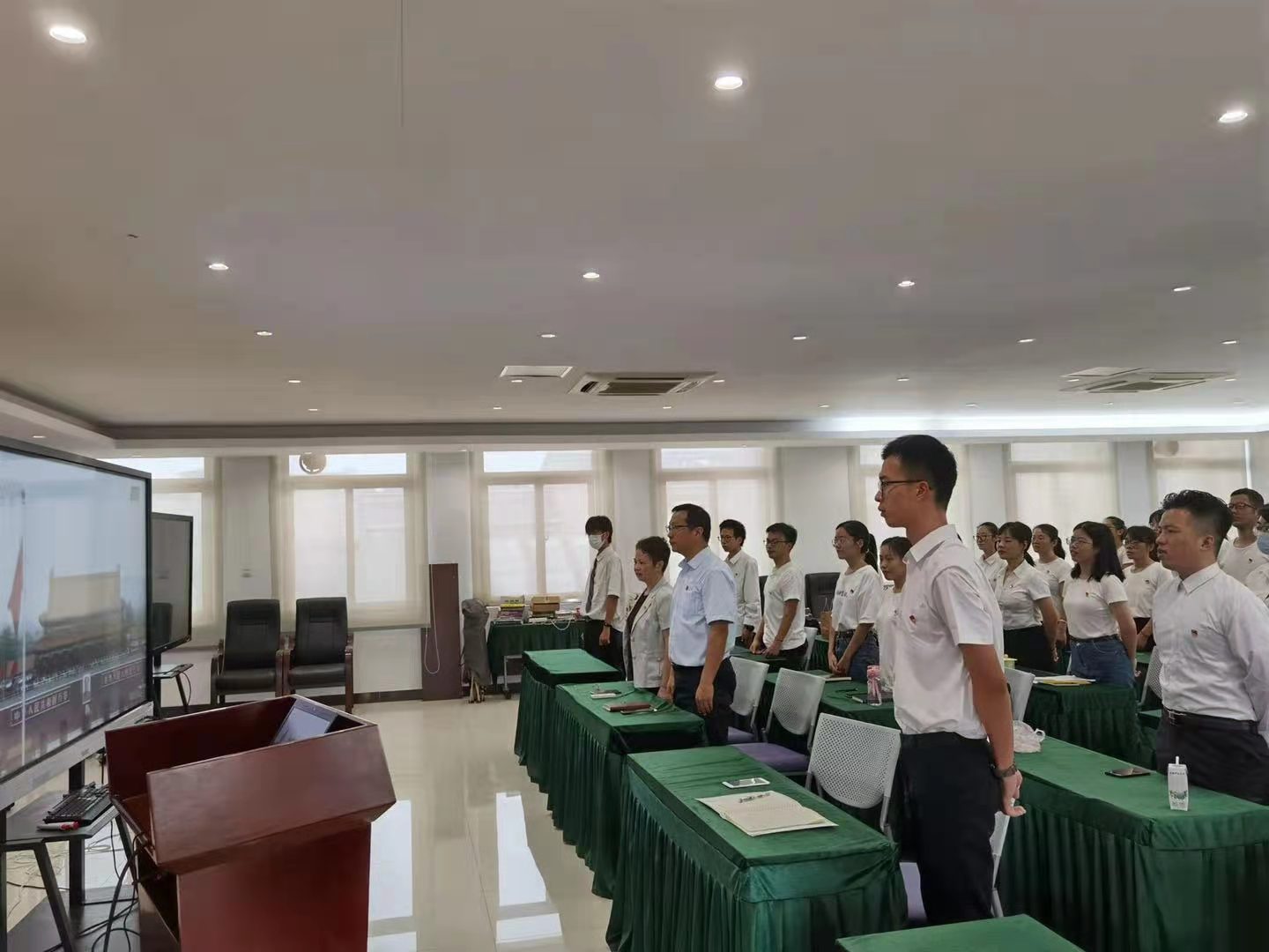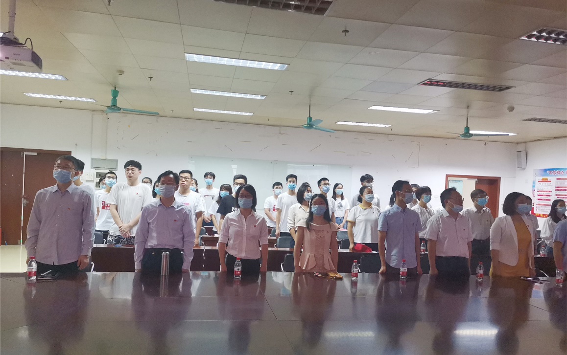 上午8时,庆祝中国共产党成立100周年大会顺利召开。在升国旗唱国歌环节,学院全体观影人员共同肃立,以线上敬礼的方式,向冉冉升起的五星红旗行注目礼。