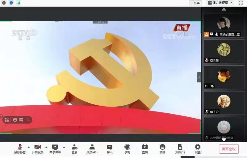 学院网络空间安全与智能科学技术联合学生党支部等分别设立直播分会场,以“线上+线下”相结合的方式观看庆典直播,并在直播结束后随即展开学习讨论交流,分享观影心得体会。