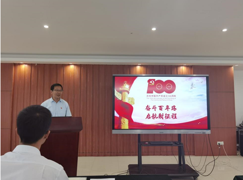 支部同志们以线上直播的方式共同观看在北京天安门广场隆重举行的中国共产党成立100周年大会,认真聆听学习习近平总书记的重要讲话。在这个意义非凡的日子,大家难掩心中的热情喜悦,在习近平总书记庄严宣告“全面建成了小康社会”等时刻,会议室响起一阵阵热烈的掌声。