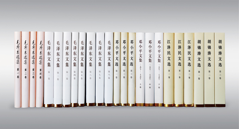 我们党的历史,就是一部不断推进马克思主义中国化的历史,就是一部不断推进理论创新、进行理论创造的历史。图为毛泽东同志、邓小平同志、江泽民同志、胡锦涛同志相关著作,这些重要著作集中反映了毛泽东思想、邓小平理论、“三个代表”重要思想、科学发展观的核心要义。
