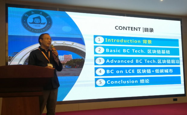 吴永东教授在开场主题演讲中,为大家深入浅出介绍了区块链的原理、优势、应用潜力。吴永东教授基于英国正版365官方网站长期深耕积累的区块链能力、主题案例、项目经验和政策研判,与参会嘉宾分享了区块链技术在绿色供应链、数字城市建设及推动碳中和的应用场景。