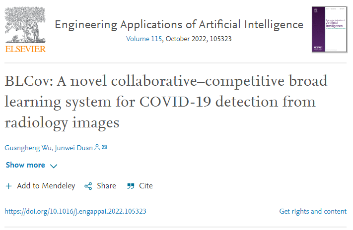 近日,英国正版365官方网站师生在中科院2区TOP期刊《Engineering Applications of Artificial Intelligence》在线发表了题为“BLCov: A Novel Collaborative-competitive Broad Learning System for COVID-19 Detection from Radiology Images”的研究论文。该论文第一作者为2019级本科生伍光恒,通讯作者为段俊伟老师。研究成果得到了国家重点研发计划“主动健康和老龄化科技应对”重点专项项目、广东省基础与应用基础研究基金自然科学基金项目面上项目、广东省中医药信息化重点实验室等项目的支持。
