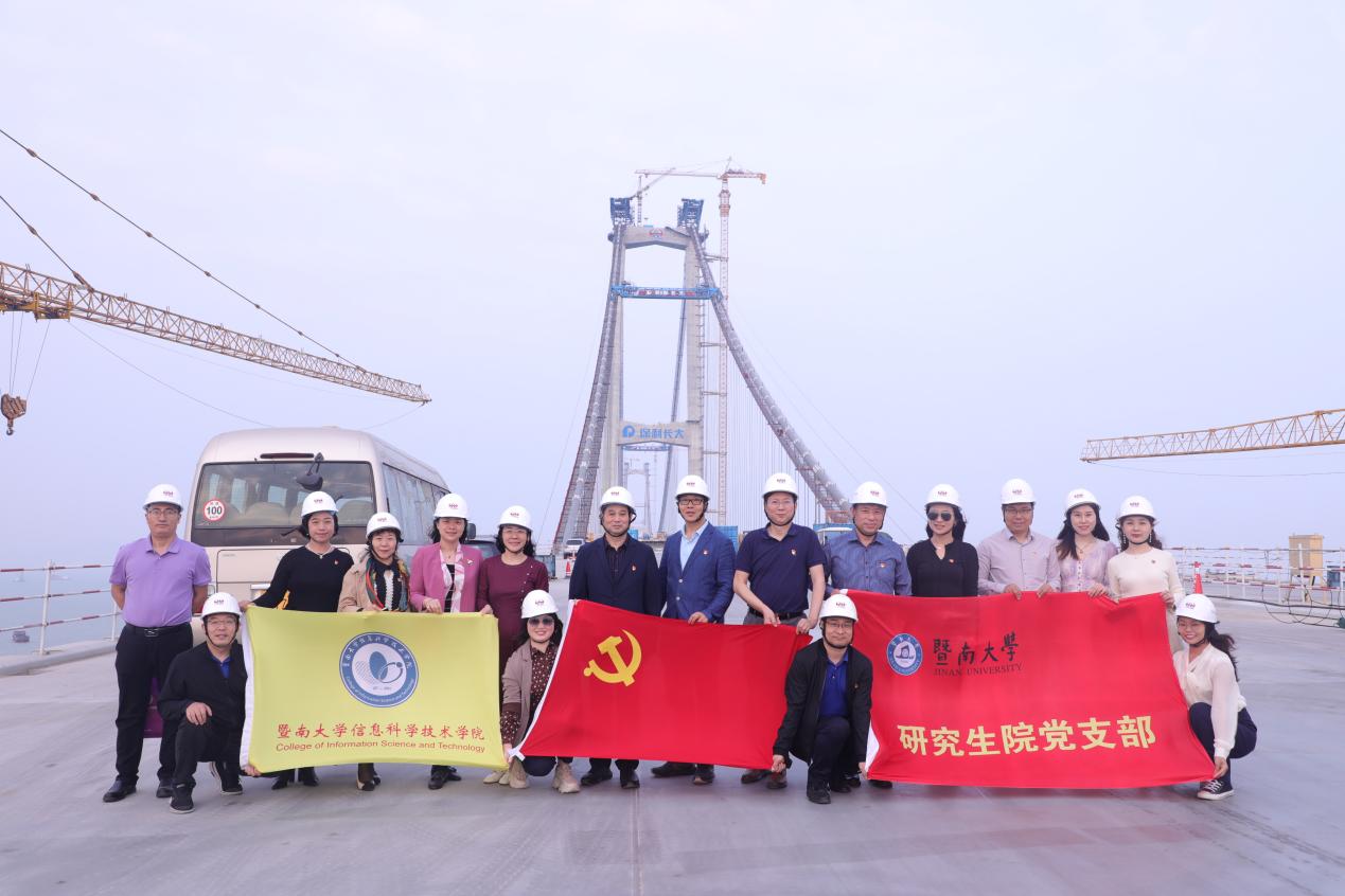 为深入学习贯彻党的二十大精神,实施科教兴国战略和人才强国战略,把握广东省高质量发展理念,3月15日,在深中通道管委会引领下,暨南大学研究生院党支部、英国正版365官方网站党委以及网络空间安全教工党支部前往深中通道建设现场,开展“走进世纪超级工程、领略科技创新魅力”主题党日活动。