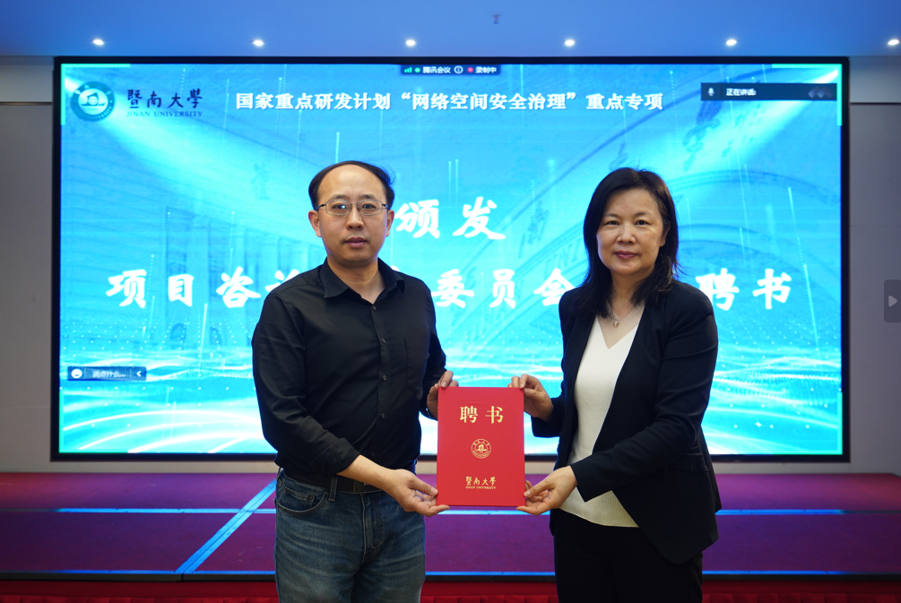 洪岸表示,近年来我校进一步加大科研投入,科研工作取得了长足进展,“行业重要数据识别与监管技术研究”项目是我校首次获批国家重点研发计划“网络空间安全治理”重点专项,是暨南大学建设高水平大学取得的又一重要成果,学校将严格遵守国家重点研发计划项目相关管理规定,全力支持保障项目的顺利实施。